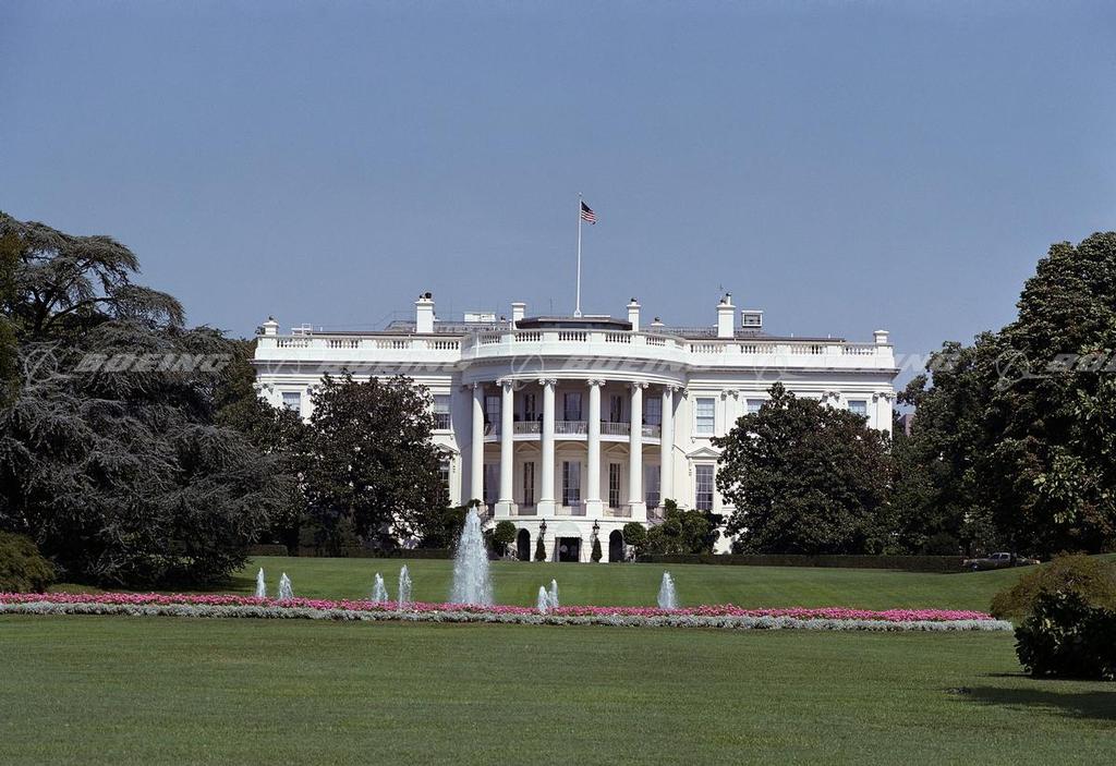 Spectators Looking Through Wrought Iron Fence at the White House South Portico, Washington D.C.