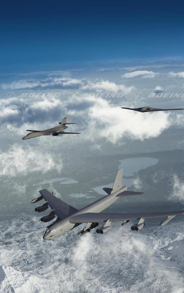 The United States Air Force bomber fleet includes about 164 aircraft—a mix of B-1s, B-2s and the venerable B-52, which first appeared in the mid-1950s. All three have played and will continue to play significant roles in conflict and peacekeeping missions around the globe, and each was either made by Boeing or a heritage company or features Boeing as a major subcontractor.