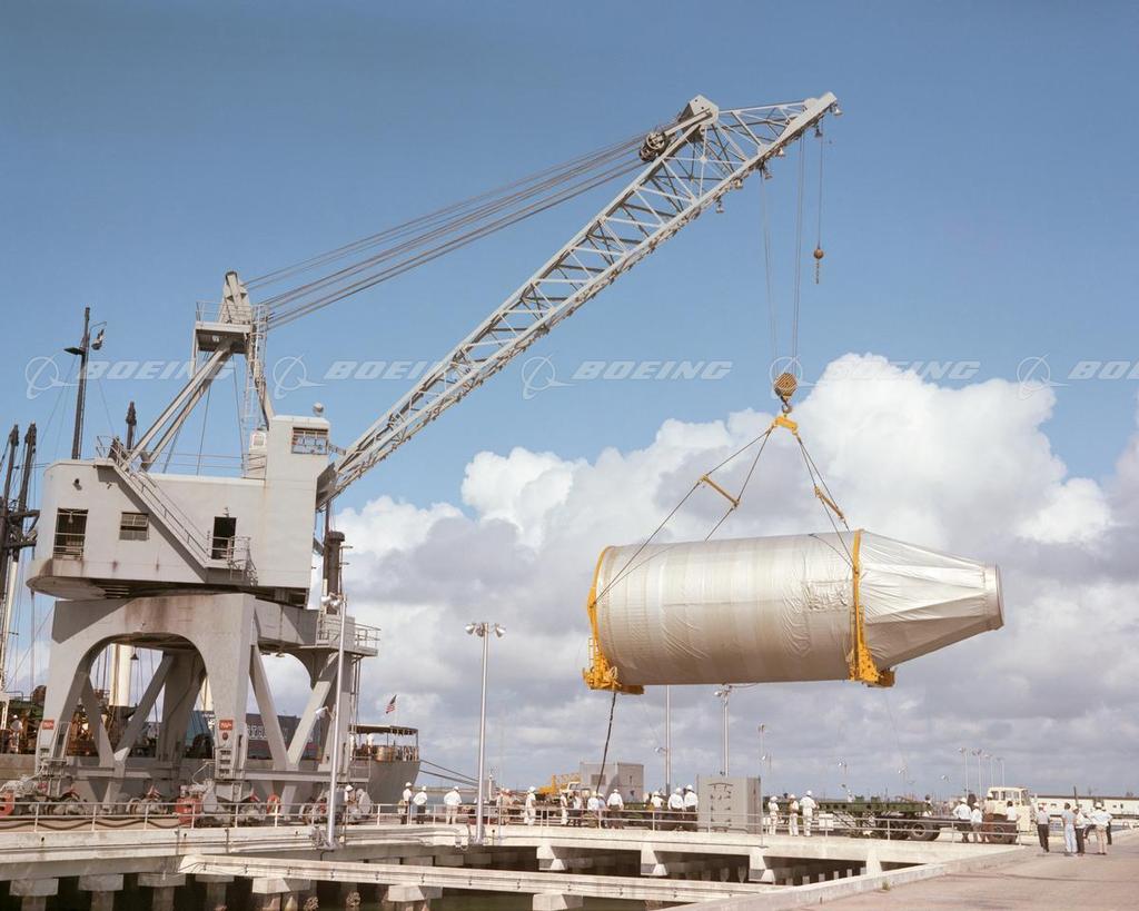 S-IVB Saturn-IB Second Stage Lifted by Crane