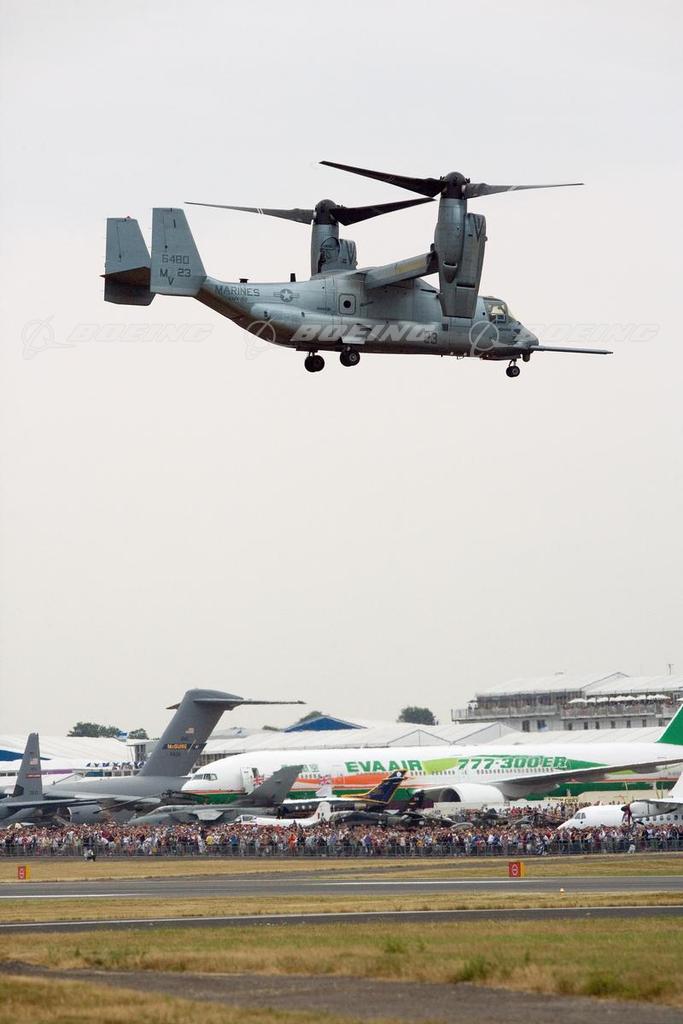 Bell-Boeing was granted approval for full-rate production of the V-22 Osprey by the U.S. Department of Defense in September 2007. Current plans include the delivery of 360 aircraft to the Marine Corps¸ 50 for the U.S. Air Force and 48 for the U.S. Navy. The V-22 Osprey tiltrotor was on display at the 2006 Farnborough International Air Show and performed successful media and show flights.