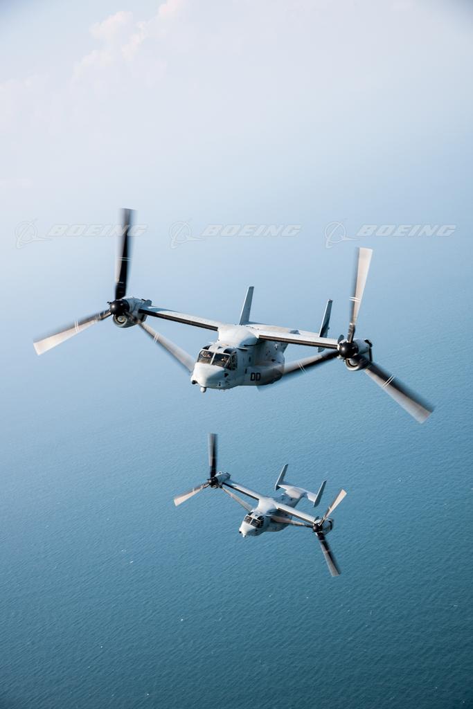 The V-22 Osprey is a joint service multi-role combat aircraft utilizing tiltrotor technology to combine the vertical performance of a helicopter with the speed and range of a fixed wing aircraft. The V-22 Osprey can carry 24 combat troops, or up to 20,000 pounds of internal cargo or 15,000 pounds of external cargo, at twice the speed of a helicopter. Boeing Rotorcraft Systems is responsible for the V-22 Osprey fuselage and all subsystems, digital avionics, and fly-by-wire flight-control systems. Boeing partner Bell Helicopter Textron, Inc., is responsible for the V-22 wing, transmissions, empennage, rotor systems and engine installation.