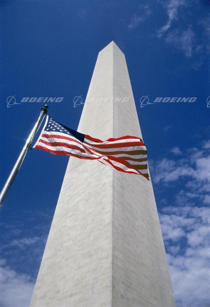 Washington Monument and American Flag, Viewed from Below, Washington D.C.