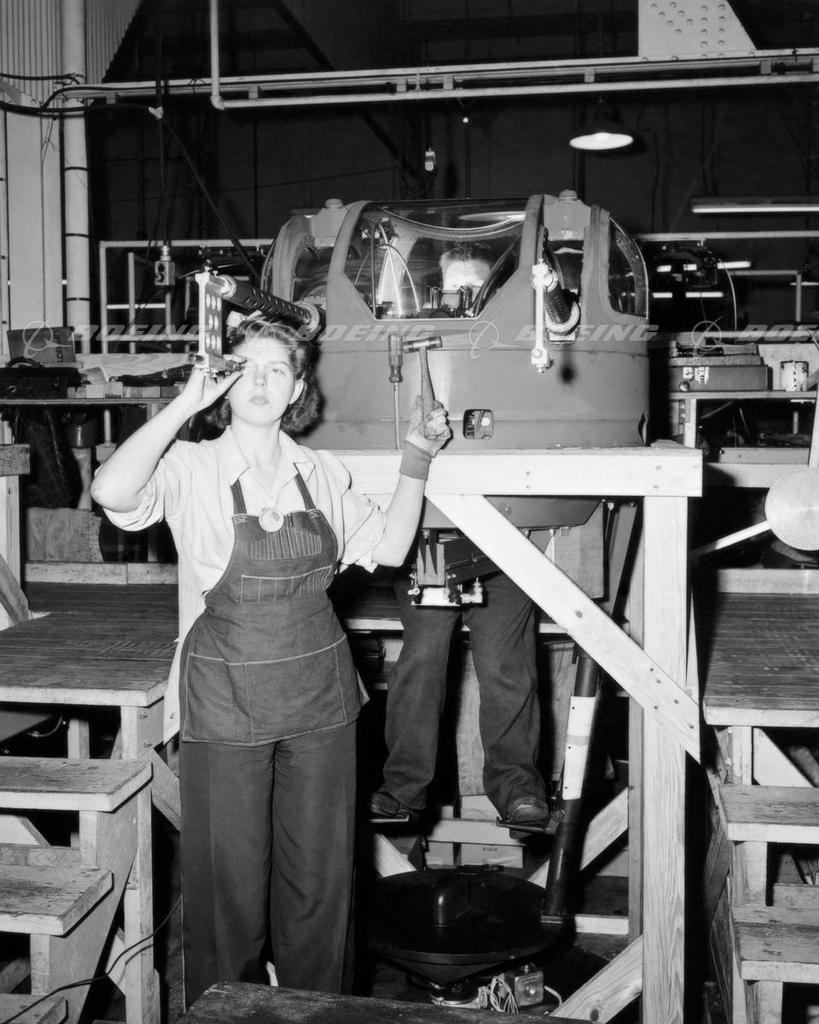Woman Drilling a B-17 Flying Fortress Tail Turret