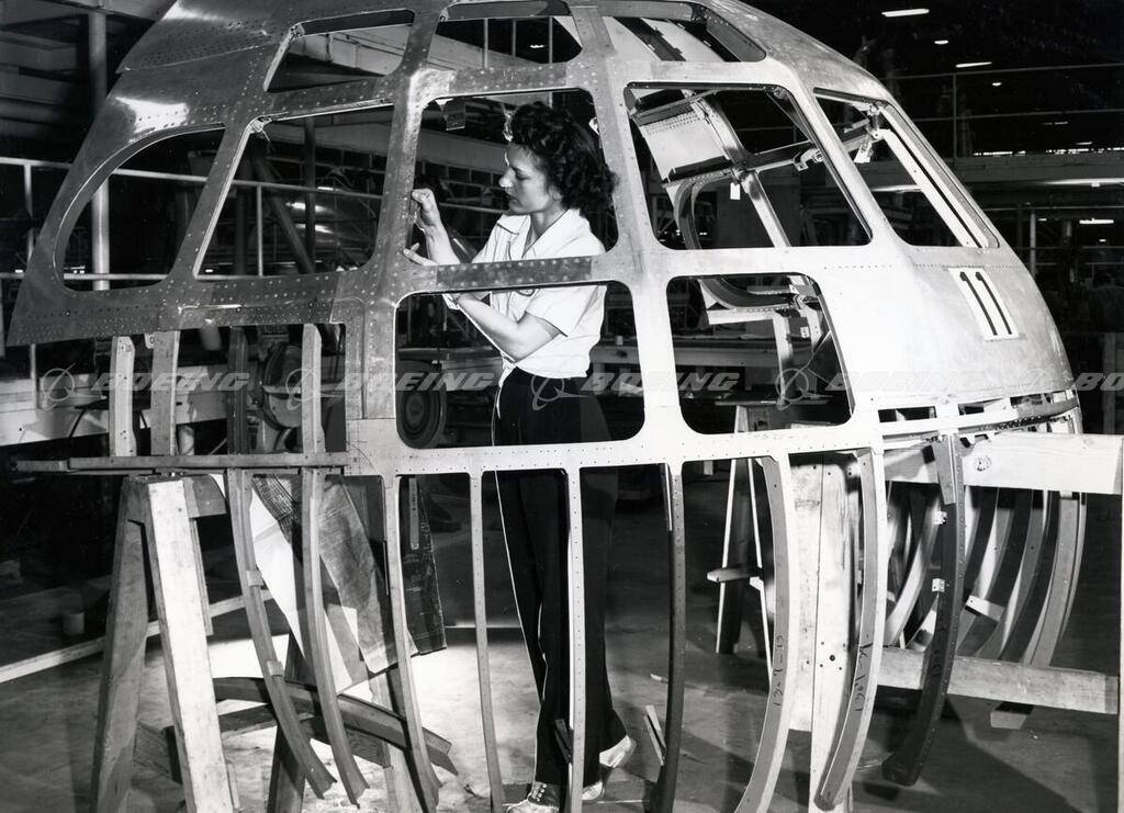 Employees Working Together on a Boeing B-17 Flying Fortress Assembly