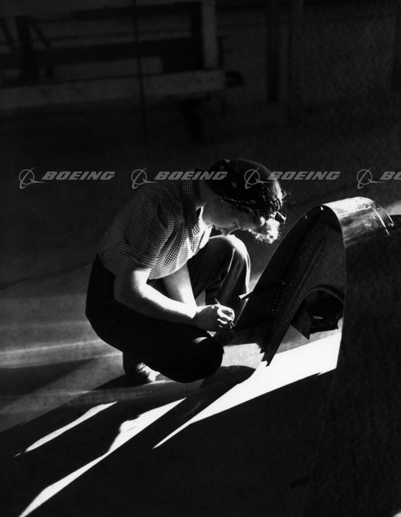 Female Employee Machinist Working on Aircraft for Douglas Aircraft Company