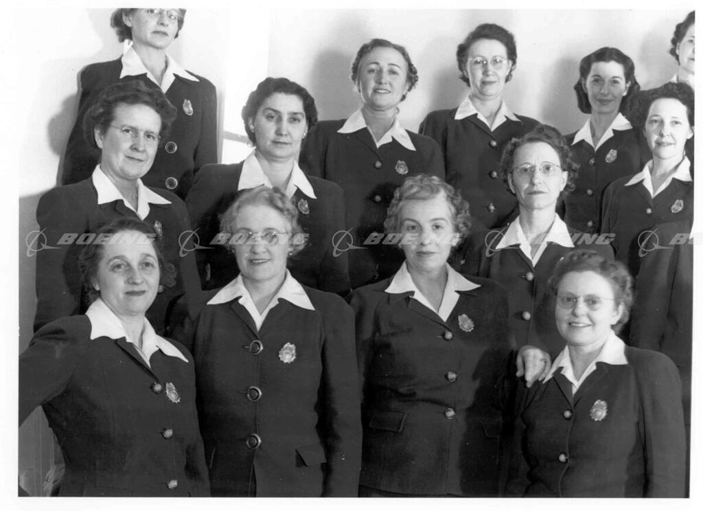 Women Pose for a Photo atop an Aircraft at North American Aviation