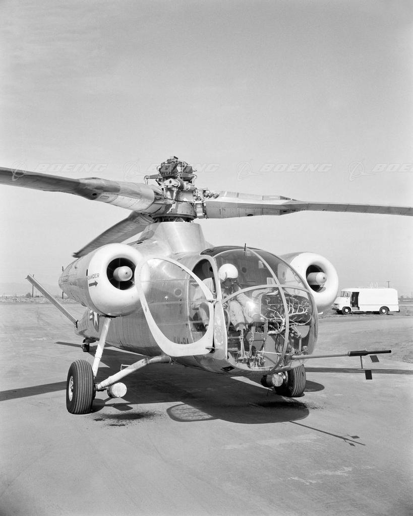 The XV-9A "Hot Cycle" research aircraft first flew in Nov. 1964 from the runway of the Hughes Helicopter Division facilities in Culver City. The test program, which expanded the company's understanding of jet-driven rotor helicopters, was completed in Aug. 1965. Both the XH-17 and XV-9A experimental programs provided useful information about helicopters that could fly without tail rotors — a development that Hughes pursued further in the late 1970s and early 1980s.