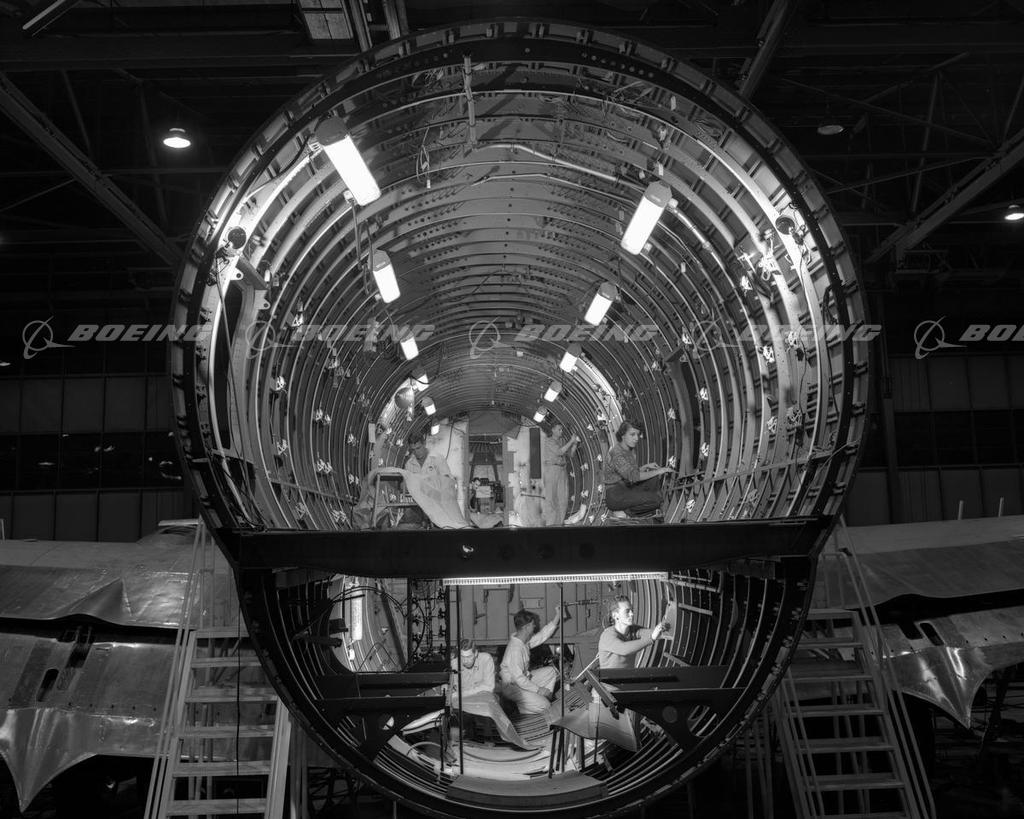 Boeing Workers Inspect Ryan Built Fuselage Section for KC-97G