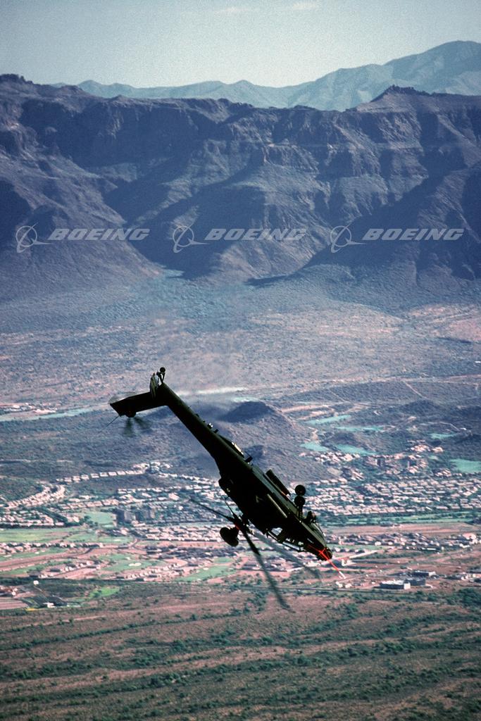 The AH-64D Apache Longbow can perform loops, left and right rolls and turns, split S and hammerhead maneuvers, and 360 degree turns, all while flying at full mission weight of approximately 16,000 pounds.