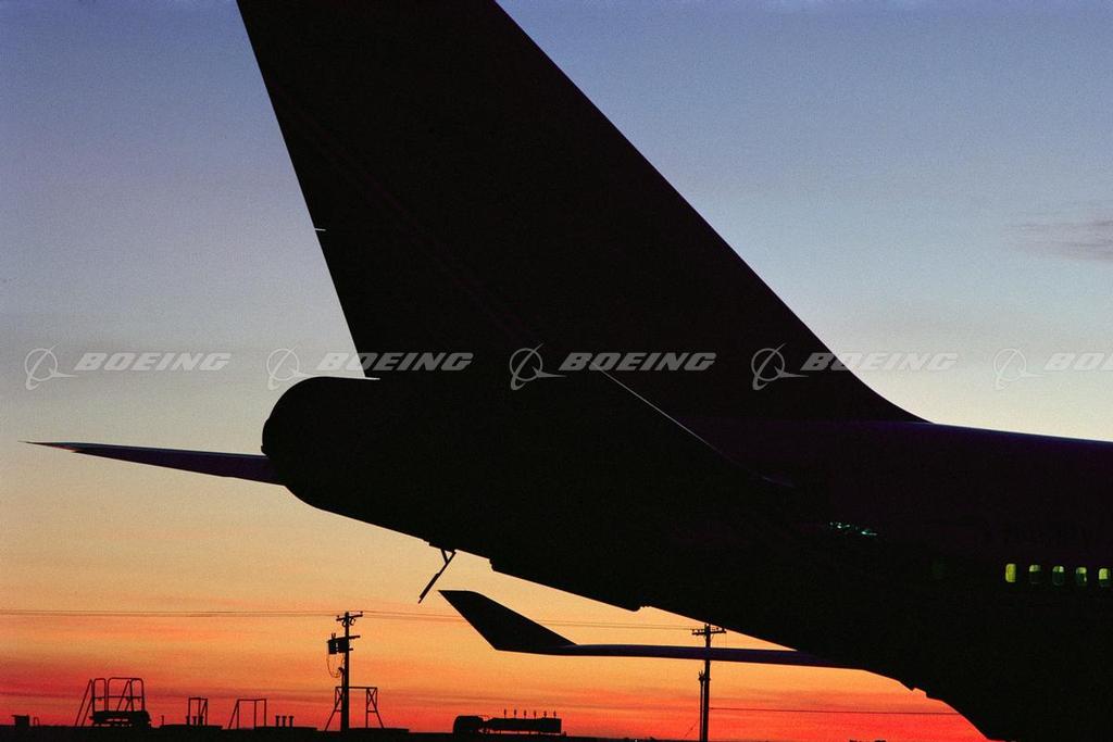 767-400ER Tail at Sunset