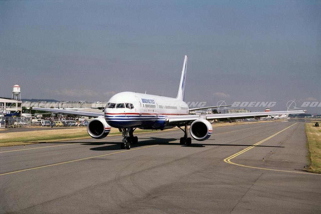 The twin-engine, medium-range Boeing 757 commercial transport first flew Feb. 19, 1982 and is up to 80 percent more fuel efficient than the 727s it was designed to replace but retains the 727's short-field capability. The 757-200, also offered as a freighter, can carry 239 passengers, in two classes, up to 4,520 miles. In September 1996, Boeing launched the 4,000-mile-range 757-300, a stretched model that seats from 243 to 279 passengers. By 1999 Boeing had delivered more than 1,000 757s. Four 757s were modified as replacements for the older 707-based VC-137 executive transports for government officials and designated C-32As.