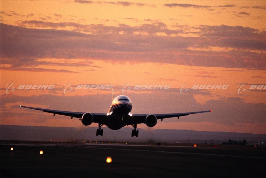 777-200 Landing at Sunset