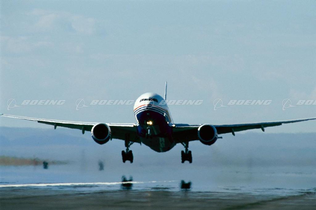 The Model 777, the first entirely new Boeing airplane in more than a decade, was the first jetliner to be 100 percent digitally designed using three-dimensional computer graphics. Throughout the design process, the airplane was preassembled on the computer, eliminating the need for a costly, full-scale mock-up. The 777 is the widest, most spacious airplane in its class and includes improvements in airfoil technology, flight deck design, passenger comfort and interior flexibility. Its greater payload and range capability result in lower operating costs to airlines, and its standard equipment includes many features that are optional on other airliners. The airplane is larger than all other twinjet or trijet airplanes but smaller than the 747. It brings the twin-engine economic advantage to medium- and long-range markets. The 777 currently is available in five models: 777-200, 777-200ER (extended range), 777-200LR (longer-range), 777-300 and the 777-300ER. The 777 is the first airplane to have a rose named after it. The deep purple-red rose with a citrus-like fragrance was developed by Olympia, Wash., Western Independent Nurseries.