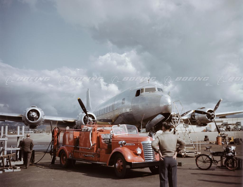 DC-6 on Ground with FireTruck