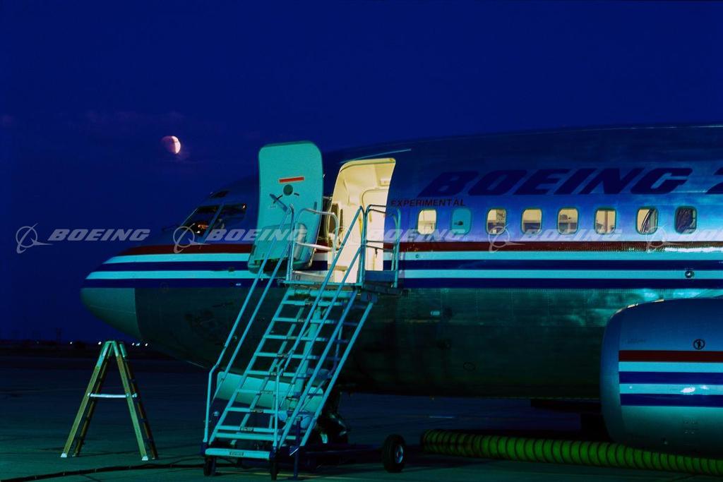 737-500 on Flight Apron at Sunset with Passenger Door Open