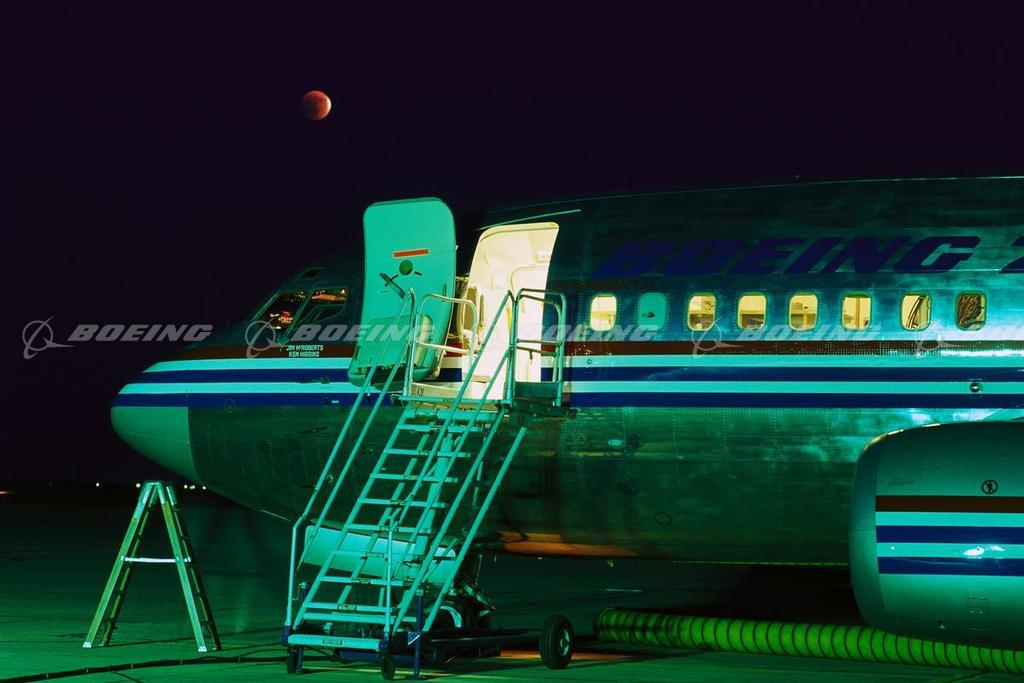 737-500 on Flight Apron at Sunset with Passenger Door Open