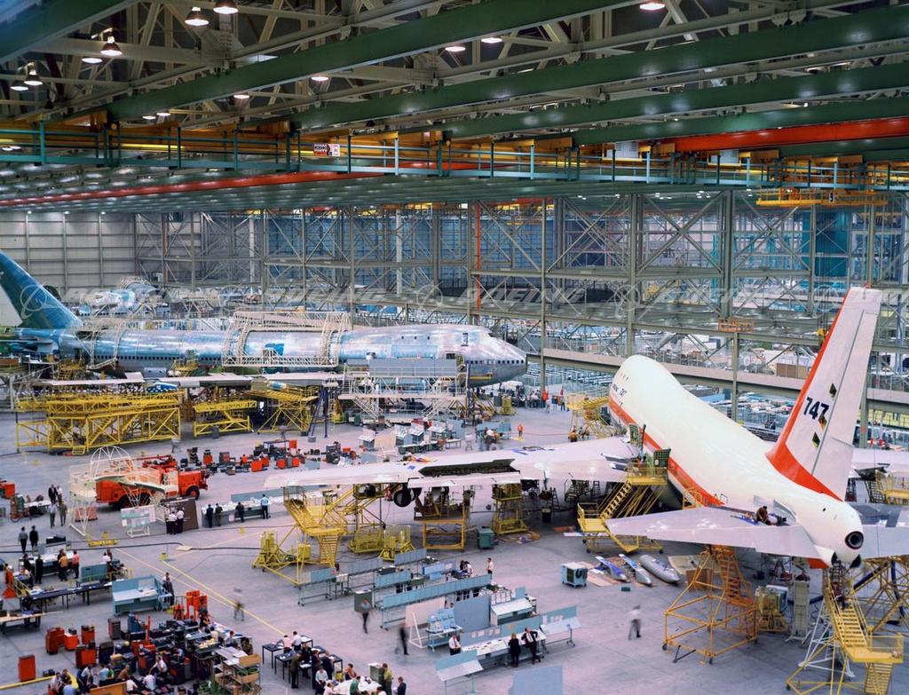 The 747 was truly monumental in size. The massive airplane required construction of the 200-million-cubic-foot 747 assembly plant in Everett, WA, the world's largest building (by volume). The fuselage of the original 747 was 225 feet long; the tail as tall as a six-story building. Pressurized, it carried a ton of air. The cargo hold had room for 3,400 pieces of baggage and could be unloaded in seven minutes. The total wing area was larger than a basketball court. Yet, the entire global navigation system weighed less than a modern laptop computer.