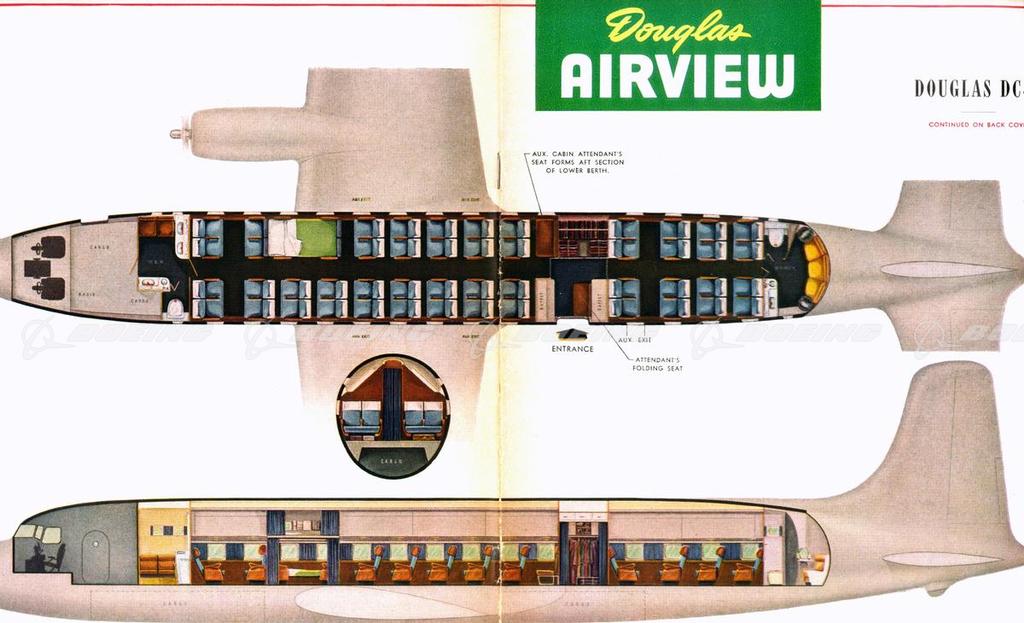 Douglas Airview, DC-6 Standard Arrangement, 52 Passenger Dayplane - 26 Passenger Sleeper