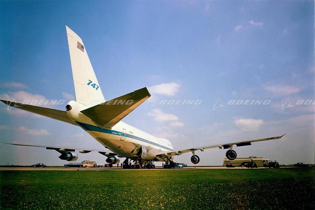 Boeing rolled out the first 747-100 from the Everett, WA factory on Sept. 30, 1968. The Boeing 747 was the world's first jumbo jet--doubling the size of the 707. Since 1970, the Boeing 747 has been produced in more than 20 versions, including freighter, convertibles, combis and special-use models. Known as the "Queen of the Skies," the 747 is the most recognized airplane in the world.