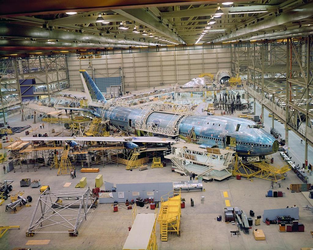 The 747 was truly monumental in size. The massive airplane required construction of the 200-million-cubic-foot 747 assembly plant in Everett, WA, the world's largest building (by volume). The fuselage of the original 747 was 225 feet long; the tail as tall as a six-story building. Pressurized, it carried a ton of air. The cargo hold had room for 3,400 pieces of baggage and could be unloaded in seven minutes. The total wing area was larger than a basketball court. Yet, the entire global navigation system weighed less than a modern laptop computer.
