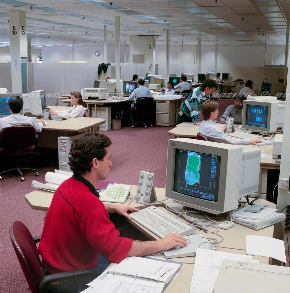 In the mid-1980s, The Boeing Company invested in three-dimensional CAD/CAM (computer-aided design/computer-aided manufacturing) technology. The pilot programs clearly demonstrated the benefits of modeling airplane parts as three-dimensional solids in the CATIA (computer-aided three-dimensional interactive application) system. CATIA - along with several Boeing-created applications - allowed Boeing engineers to simulate the geometry of an airplane design on the computer without the costly and time-consuming investment of using physical mock-ups. The opportunity to apply the new CAD/CAM approach as well as other new engineering and manufacturing ideas came in 1990 with the launch of the Boeing 777 twinjet.