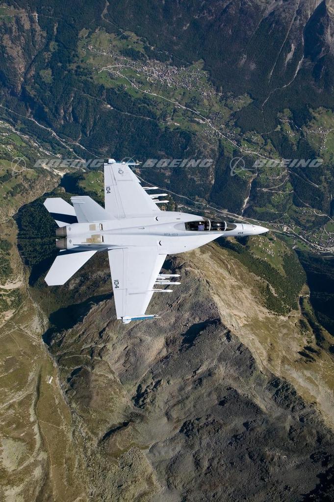 F/A-18E/F Super Hornet in Flight over Swiss Alps