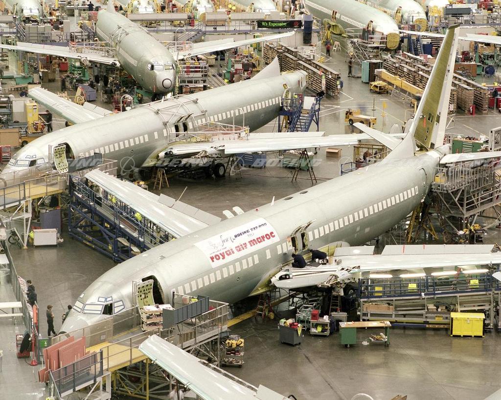 The first Next-Generation 737-800 is being assembled at Boeing's facility in Renton, Wash. The Boeing 737's reliability and performance have made the twinjet the best-selling commercial jetliner in aviation history. With the Next-Generation 737s ( -600/ -700/ -800/ -900), Boeing has further enhanced its reputation for providing unparalleled value for airline customers. In 2002 the 737 manufacturing process converted to a moving line system, replacing the station to station method of assembly pictured here.