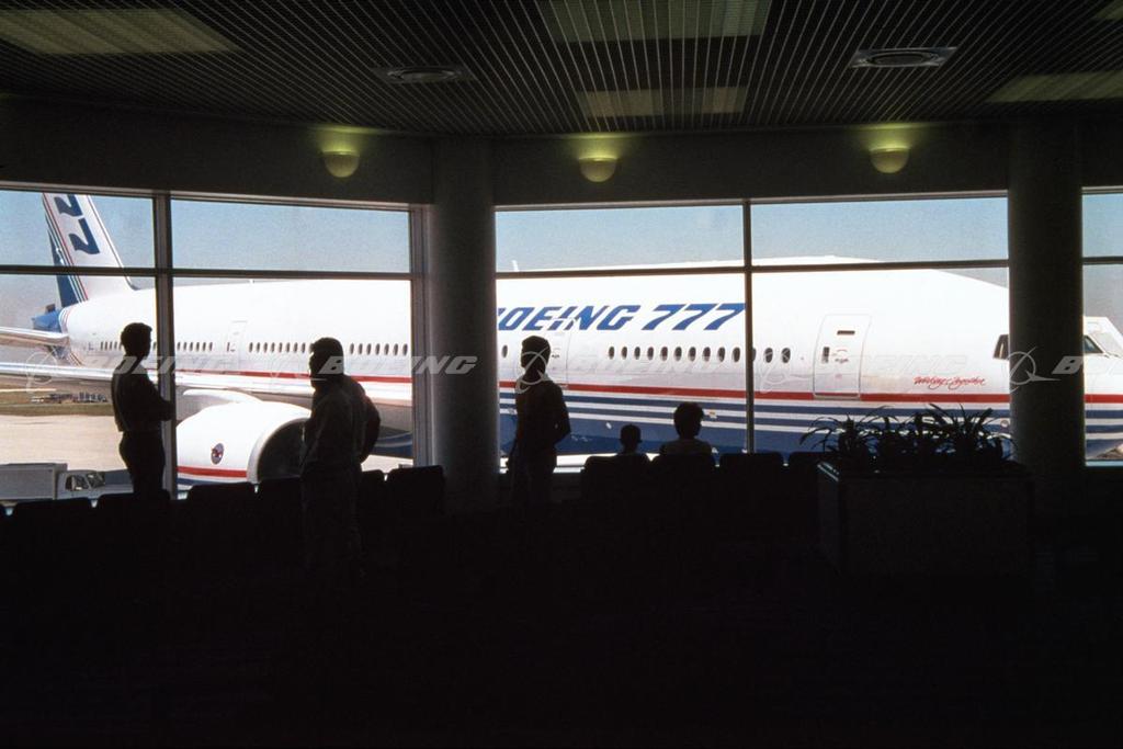 The wide-body Model 777 was the first commercial jet that was 100 percent digitally designed using three-dimensional solids technology. It earned the Collier Trophy for top aeronautical achievement in 1996. The twinjet commercial transport uses fuel efficiently, and its comfortable cabin is very popular with passengers. The 777-200 can take 305 passengers 5,995 miles. The 777-300 can carry 368 passengers 6,899 miles. Launched in February 2000, the 777-200LR and 777-300ER will fly 9,420 or 7,880 nautical miles, respectively.