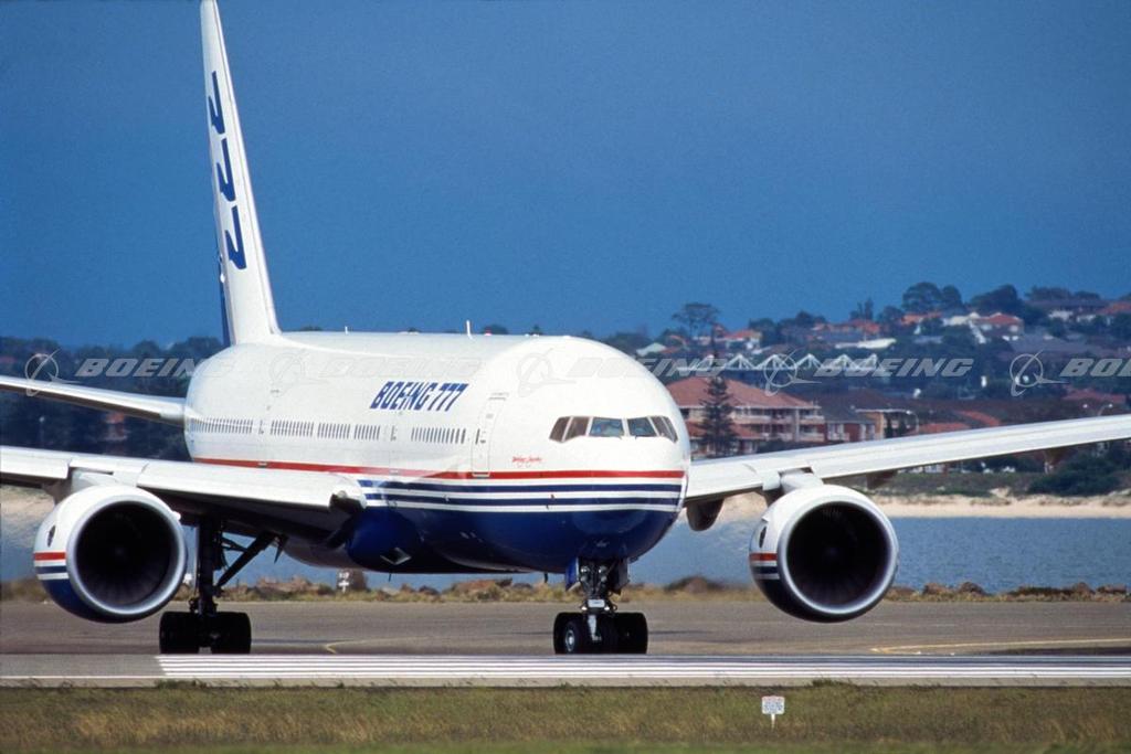 The wide-body Model 777 was the first commercial jet that was 100 percent digitally designed using three-dimensional solids technology. It earned the Collier Trophy for top aeronautical achievement in 1996. The twinjet commercial transport uses fuel efficiently, and its comfortable cabin is very popular with passengers. The 777-200 can take 305 passengers 5,995 miles. The 777-300 can carry 368 passengers 6,899 miles. Launched in February 2000, the 777-200LR and 777-300ER will fly 9,420 or 7,880 nautical miles, respectively.