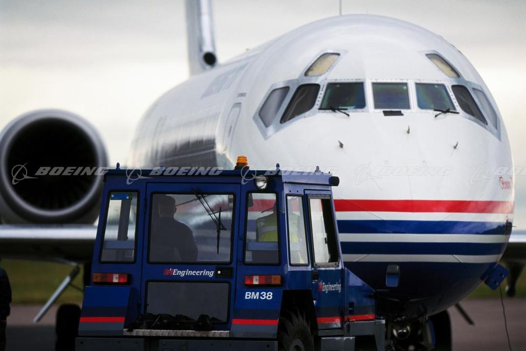 The 717 is a full-size twinjet designed specifically for the short-range, 100-seat regional airline market and is a very efficient and exceptionally quiet airplane. Its advanced technologies and rugged simplicity of design allow it quick turnaround time at a wide range of airports, so crew and passengers spend less time on the ground. It makes effective use of today's technology to lower operating costs, reduce noise and emissions, and provide big jet comfort. The airplane, formerly MD-95, was designated the Boeing 717 following the merger of McDonnell Douglas and The Boeing Company in 1997. In early 2005, after careful assessment of the challenging 100-seat market, Boeing announced that it will conclude 717 production in 2006 after delivering on current customer commitments.