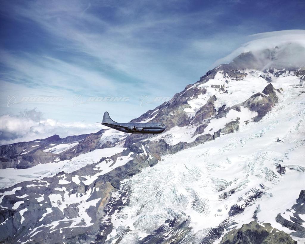 XC-97 Stratofreighter Air to Air, Flying over Mount Rainier