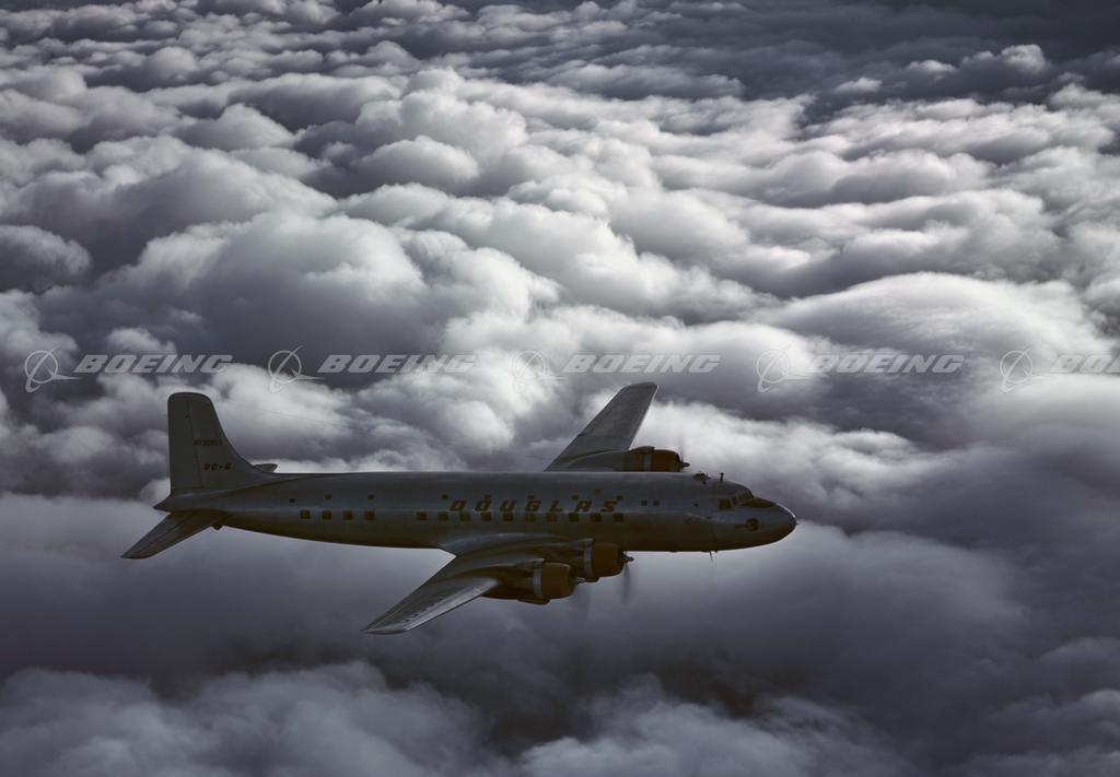 Douglas DC-6 (1946-1958): Nearly identical to the DC-4 in appearance, the DC-6 was first conceived as a long-range military transport. The plane made its maiden flight on February 15, 1946. The key difference between the DC-4 and DC-6 was the DC-6’s larger engines, which were twice as powerful as the engines on the DC-4. The DC-6 was the first Douglas airliner with a pressurized cabin, which enabled it to fly higher and faster, thus taking its passengers “over the weather.” The DC-6 was the most economical commercial aircraft of the propeller era. Its operating costs were among the lowest until jetliners came on the scene. Military versions were produced under the designations C-118 (Air Force) and R6D (Navy). President Harry Truman chose a DC-6 for official use, and christened it the “Independence,” for his hometown in Missouri. During its 12-year production run, Douglas delivered 537 DC-6s, plus 167 military versions.