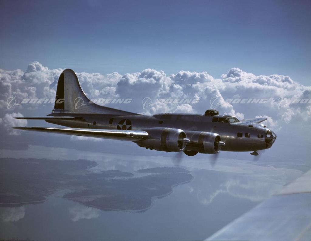 The Boeing B-17E of 1941. The B-17E was the first "offensive" model of the Flying Fortress family. It first flew on September 5, 1941, and in the ensuing year many hundreds were produced at Boeing, Douglas and Lockheed. Among the major changes were a longer fuselage, increased fin area, dorsal and ventral power turrets, tail gun position and increased nose armament. Gross weight was increased to 60,000 pounds, and top speed to 325 mph. A total of 512 was built.