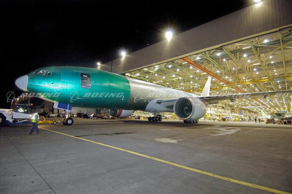 On April 30, 2008 Boeing's newest cargo airplane, the 777 Freighter, was towed out of Boeing's Everett, Washington factory and onto the flight line. Work will continue on the first 777 Freighter to prepare it for flight test this summer and to paint the airplane in Boeing's signature blue livery.