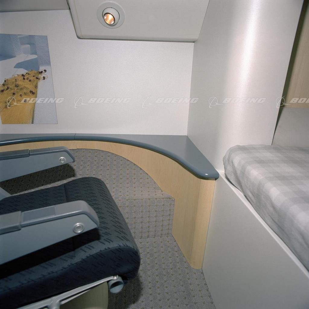 Boeing is offering its 777 customers new innovations that take advantage of the space in the overhead area of the airplane -- the area located between the top of the stow bins and the crown of the airplane. These innovations will allow operators to use the overhead space for crew rest stations and storage. Locating crew rest stations and storage in the overhead areas of the airplane allows the main and lower decks to be used for generating revenue, such as increased passenger seating or cargo capacity.