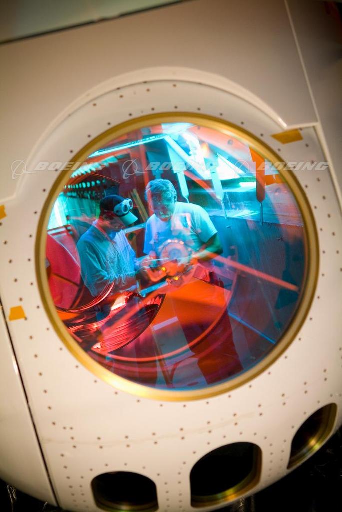 Boeing SVS Technicians Reflected in the Turret of the Advanced Tactical Laser (ATL)