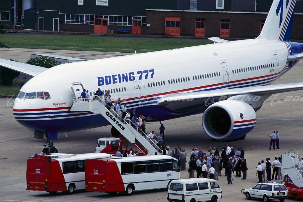 The Model 777, the first entirely new Boeing airplane in more than a decade, was the first jetliner to be 100 percent digitally designed using three-dimensional computer graphics. Throughout the design process, the airplane was preassembled on the computer, eliminating the need for a costly, full-scale mock-up. The 777 is the widest, most spacious airplane in its class and includes improvements in airfoil technology, flight deck design, passenger comfort and interior flexibility. Its greater payload and range capability result in lower operating costs to airlines, and its standard equipment includes many features that are optional on other airliners. The airplane is larger than all other twinjet or trijet airplanes but smaller than the 747. It brings the twin-engine economic advantage to medium- and long-range markets. The 777 currently is available in five models: 777-200, 777-200ER (extended range), 777-200LR (longer-range), 777-300 and the 777-300ER. The 777 is the first airplane to have a rose named after it. The deep purple-red rose with a citrus-like fragrance was developed by Olympia, Wash., Western Independent Nurseries.