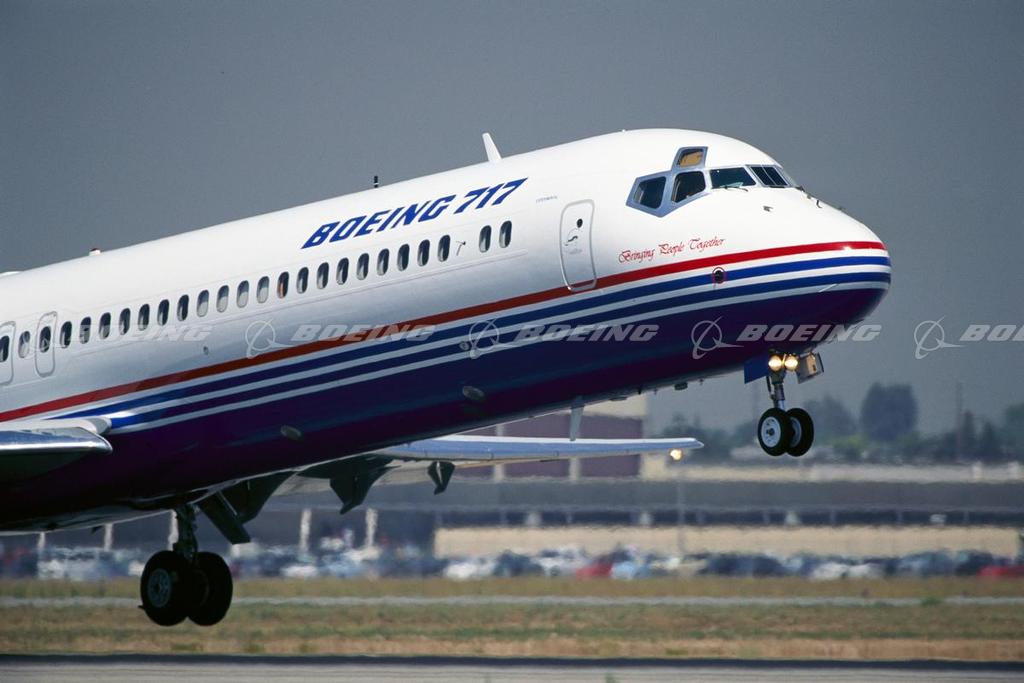 The 717 is a full-size twinjet designed specifically for the short-range, 100-seat regional airline market and is a very efficient and exceptionally quiet airplane. Its advanced technologies and rugged simplicity of design allow a quick turnaround time at a wide range of airports, so crew and passengers spend less time on the ground. It makes effective use of today's technology to lower operating costs, reduce noise and emissions, and provide big jet comfort. The airplane, formerly MD-95, was designated the Boeing 717 following the merger of McDonnell Douglas and The Boeing Company in 1997. In early 2005, after careful assessment of the challenging 100-seat market, Boeing announced that it will conclude 717 production in 2006 after delivering on current customer commitments.