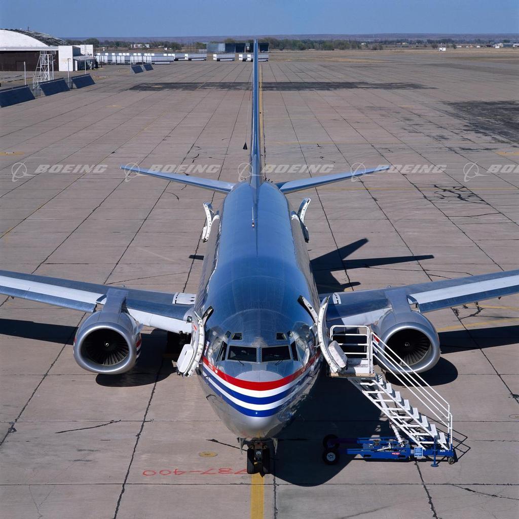 Development of the quieter, more fuel-efficient CFM56-3 series of engines allowed Boeing to improve its most popular jetliners and produce the advanced-technology 737-330, -400, and -500. The engines are larger and mounted forward of the wing struts instead of tucked directly under the wing as in the -100 and -200 versions. Advancements on the new-generation 737s included a stregthened wing to accomodate greater gross weight, tip extensions to the wings and horizontal stabilizers, and stregthened wheels, tires and brakes. The 737-200, -300, -400, -500 have the same handling characteristics so that pilots can use the same Type rating to fly all of them. Airlines' spares inventory and maintenance are simplified by making a substantial number of replaceable parts on the -300, -400, -500 identical to those used on the -200. The 737-400 is about 10 feet longer than the 737-300. It holds 19 more passengers and has a gross weight of up to 150,000 pounds, while retaining the same fuel efficiency, low noise, and low operating costs as its predecessor.