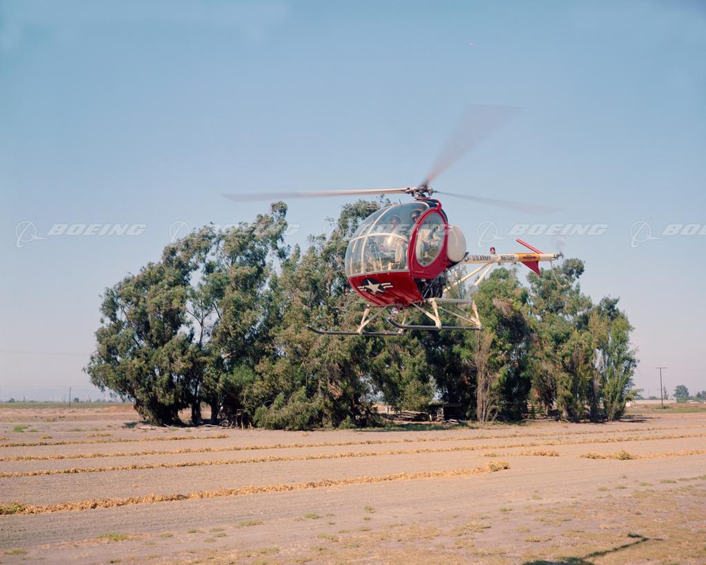Based on the Model 269 helicopter, which first flew in 1956, the TH-55A Osage was the first military aircraft production program for the Hughes division acquired by McDonnell Douglas in 1984. The TH-55A was selected by the U.S. Army in 1964 to be its primary helicopter trainer. In two decades the piston-powered Osage trained more than 30,000 Army pilots while logging over three million flight hours.