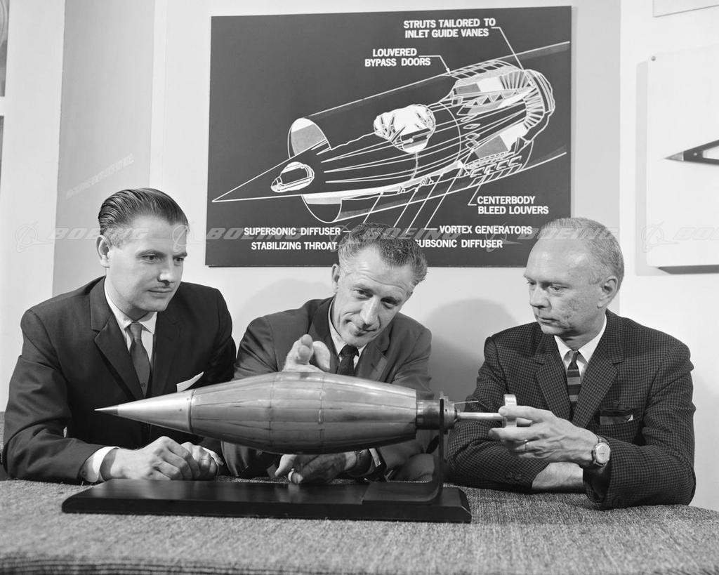 Three Men with SST Supersonic Transport Prototype Models