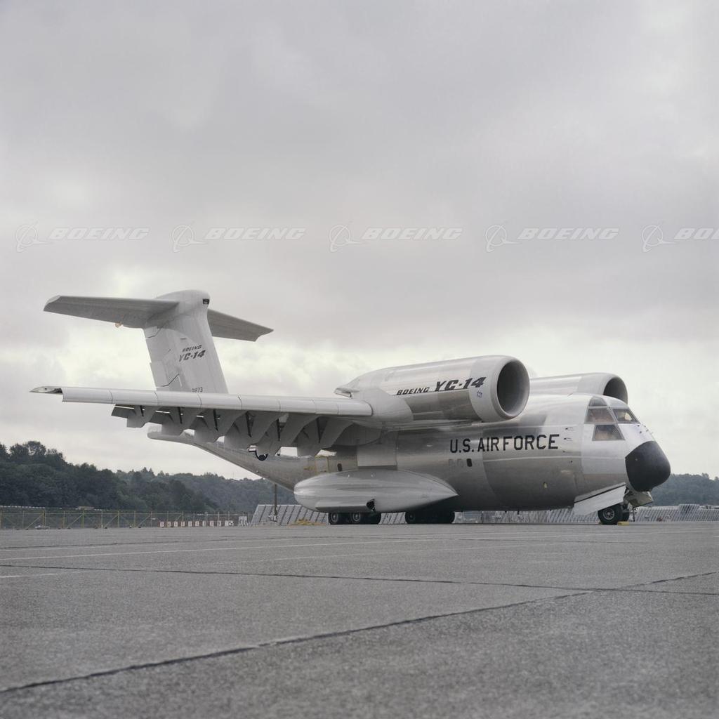 The YC-14 was built to carry troops and equipment into battle zones with short, temporary airfields. Cargo and wheeled vehicles could be loaded into the wide fuselage via a built-in tail ramp. Although the YC-14 never went into production, its two prototypes, built in 1976, introduced significant technological breakthroughs, most notably an upper-surface-blowing (USB) design for high aerodynamic lift. The achievements of the YC-14 contributed in a significant way to advance studies of STOL technology.