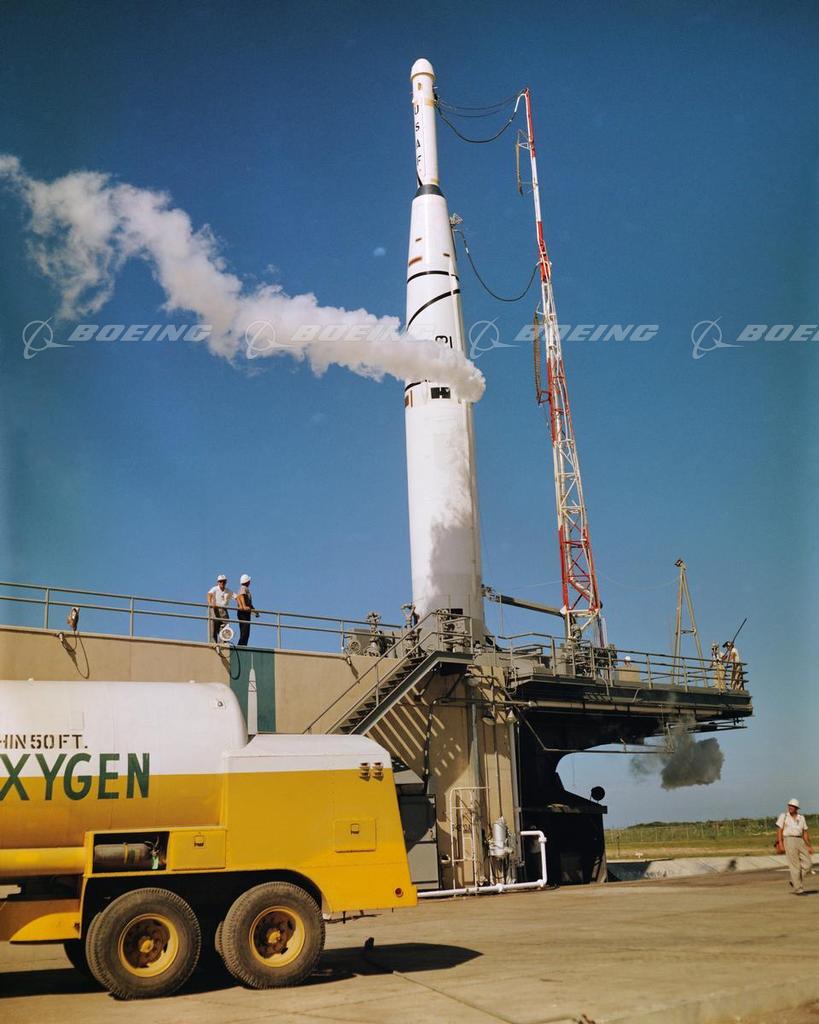 Thor Delta D, S/N 25, on Launch Pad with Crew