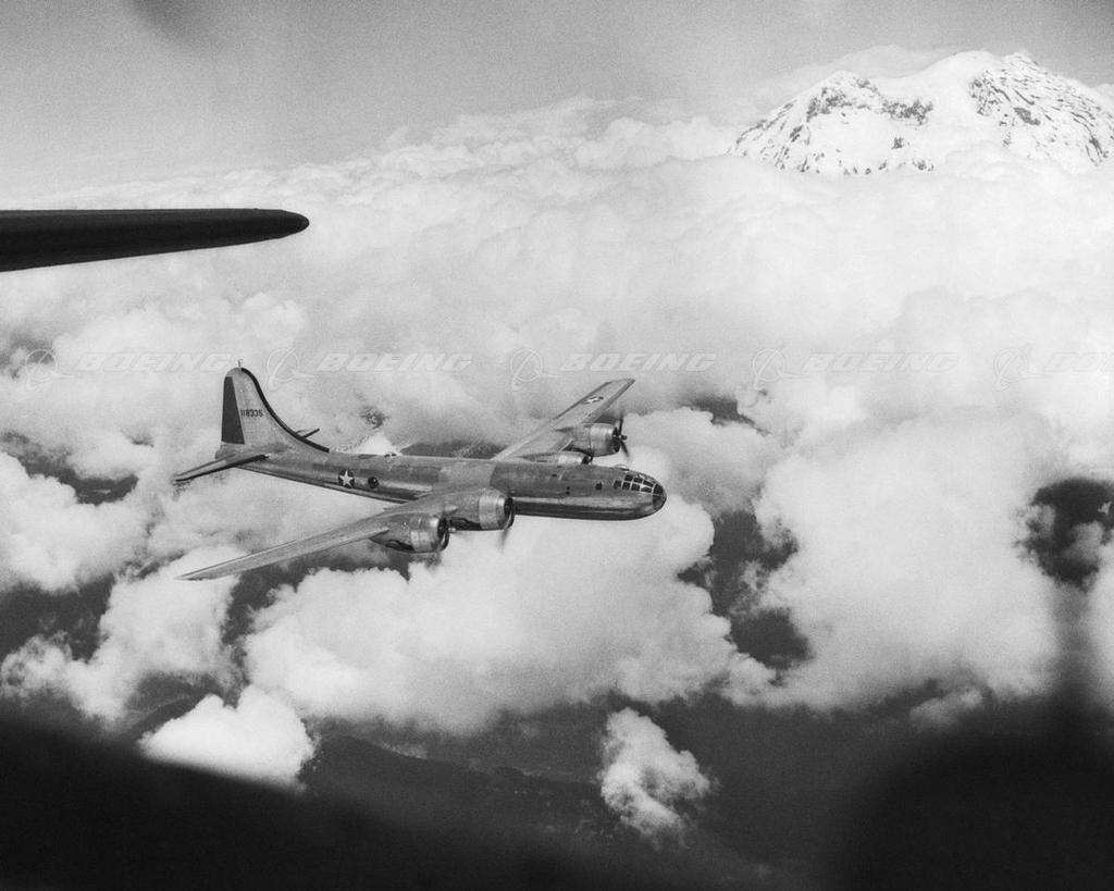 The Boeing B-29 Superfortress, the most technologically advanced airplane produced during World War II, first flew Sept. 21, 1942. The B-29 had many new features, including guns that could be fired by remote control. The crew areas were pressurized and connected by a long tube over the bomb bays. The tail gunner had a separate pressurized area that could only be left during unpressurized flight. At 105,000 pounds, the B-29 was also the heaviest production plane because of increases in range, bomb load and defensive requirements. The B-29 used the high-speed Boeing 117 airfoil, and its larger Fowler flaps added to the wing area as they increased lift. Modifications led to the B-29D, upgraded to the B-50, and the RB-29 photo reconnaissance aircraft. The Soviet-built copy of the B-29 was called the Tupolev Tu-4. A total of 3,970 B-29s were built.