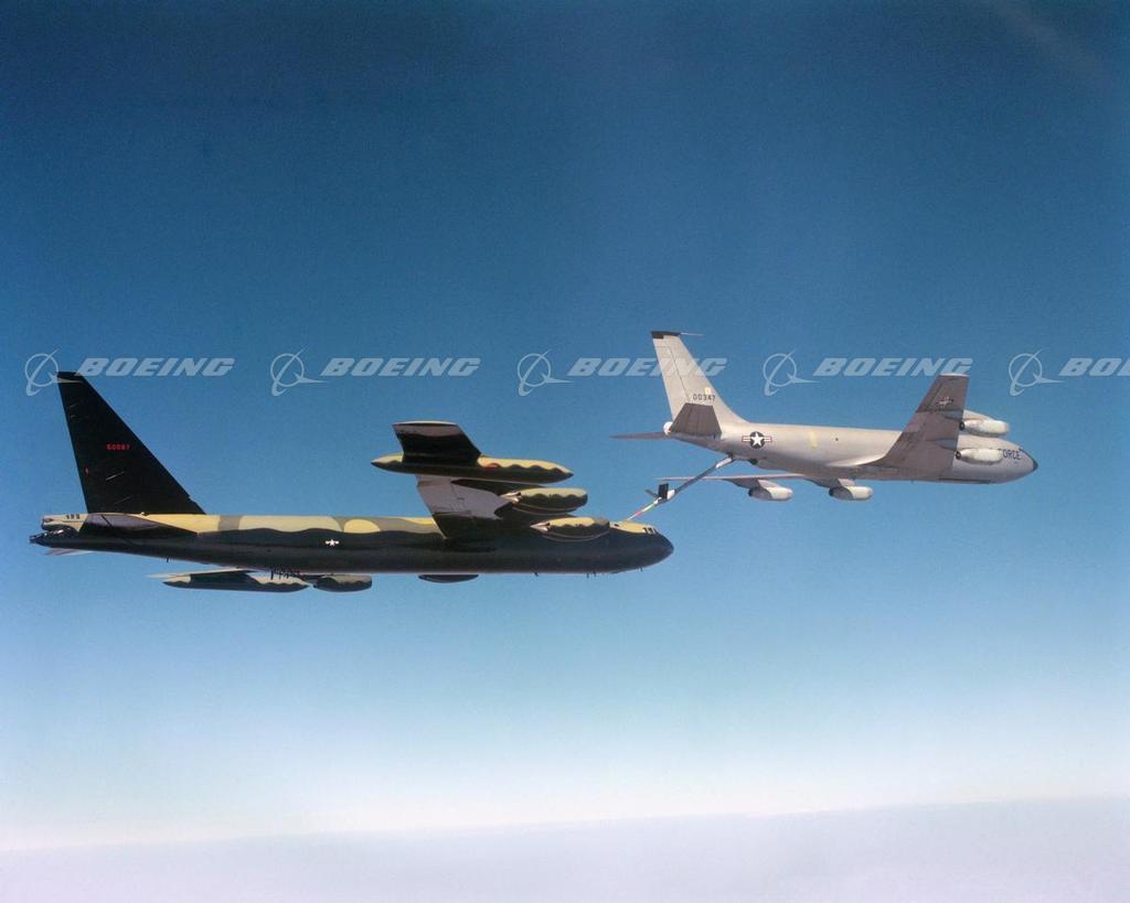 KC-135 Stratotanker Refuels B-52 Stratofortress in Flight