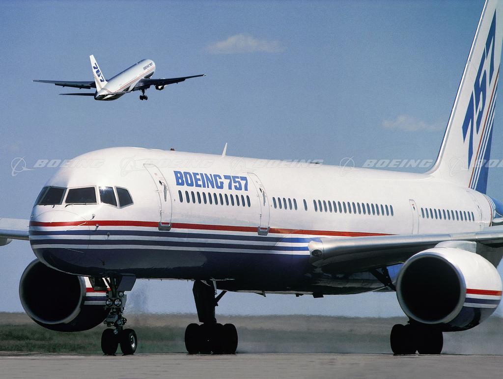 The 757-200, foreground, and 767, background, comprise the only family of jetliners that includes single- and dual-aisle models.