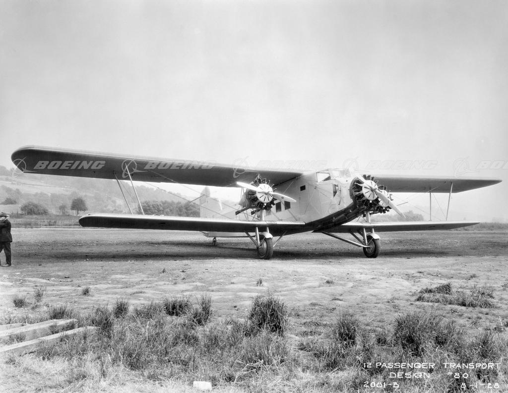 The Model 80 transport series, built for Boeing Air Transport, was America's first airliner designed specifically for passenger comfort and convenience. The first version was the 12-passenger Model 80 in 1928. It evolved into the 18-passenger Model 80A, the open cockpit Model 80B, and a deluxe executive transport, the Model 226. The first female flight attendants served passengers on the Model 80A. These were registered nurses, capable of calming travelers and clearing fences when the plane landed short of a runway.