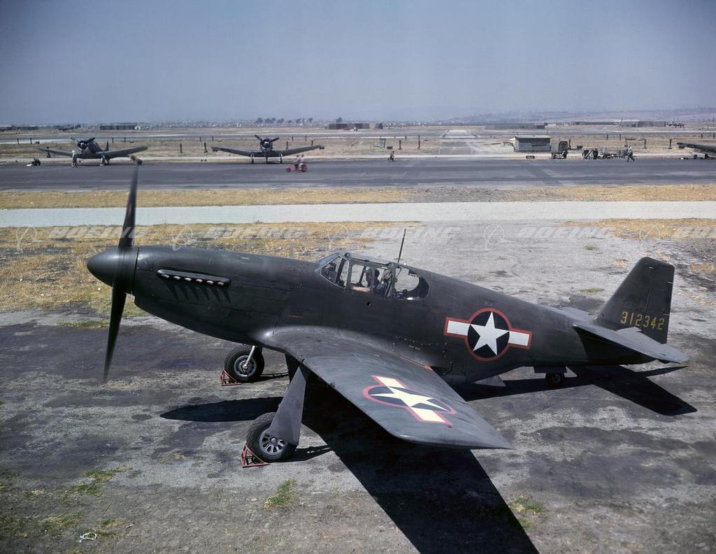 North American Aviation's powerful and agile P-51 was the first single-engine aircraft based in England to penetrate Nazi Germany during World War II. With its superior aerodynamics, the Mustang outperformed enemy planes and went on to establish an impressive aerial record. It first flew in 1941 and was initially designed for the British Royal Air Force for fighter reconnaissance. By war's end North American built 15,575 P-51 Mustangs. The P-51D Mustang had a wingspan of 37 feet and was 32 feet long. Powered by one 1,490- horsepower engine, it flew 437 mph with a range of 2,300 miles.