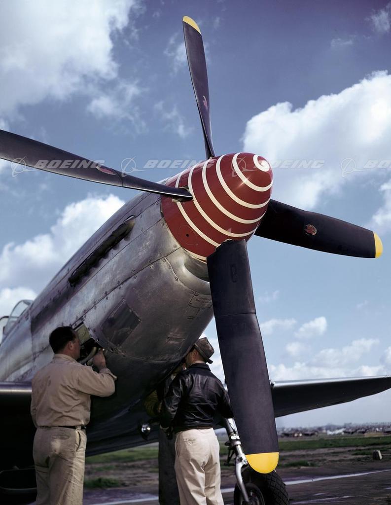 North American Aviation's powerful and agile P-51 was the first single-engine aircraft based in England to penetrate Nazi Germany during World War II. With its superior aerodynamics, the Mustang outperformed enemy planes and went on to establish an impressive aerial record. It first flew in 1941 and was initially designed for the British Royal Air Force for fighter reconnaissance. By war's end North American built 15,575 P-51 Mustangs. The P-51D Mustang had a wingspan of 37 feet and was 32 feet long. Powered by one 1,490- horsepower engine, it flew 437 mph with a range of 2,300 miles.
