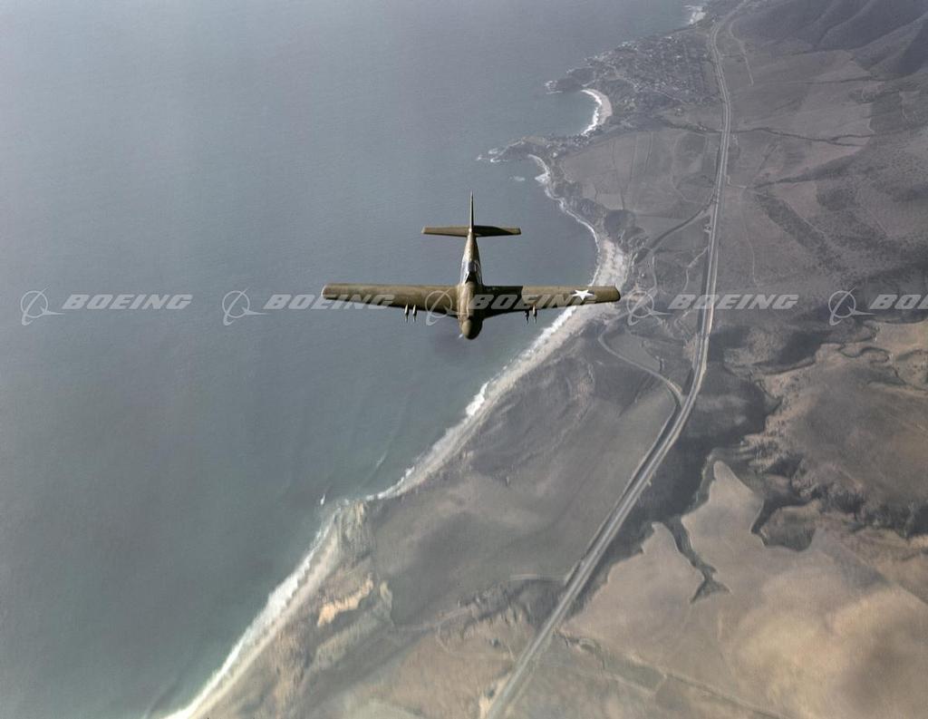 North American Aviation's powerful and agile P-51 was the first single-engine aircraft based in England to penetrate Nazi Germany during World War II. With its superior aerodynamics, the Mustang outperformed enemy planes and went on to establish an impressive aerial record. It first flew in 1941 and was initially designed for the British Royal Air Force for fighter reconnaissance. By war's end North American built 15,575 P-51 Mustangs. The P-51D Mustang had a wingspan of 37 feet and was 32 feet long. Powered by one 1,490- horsepower engine, it flew 437 mph with a range of 2,300 miles.